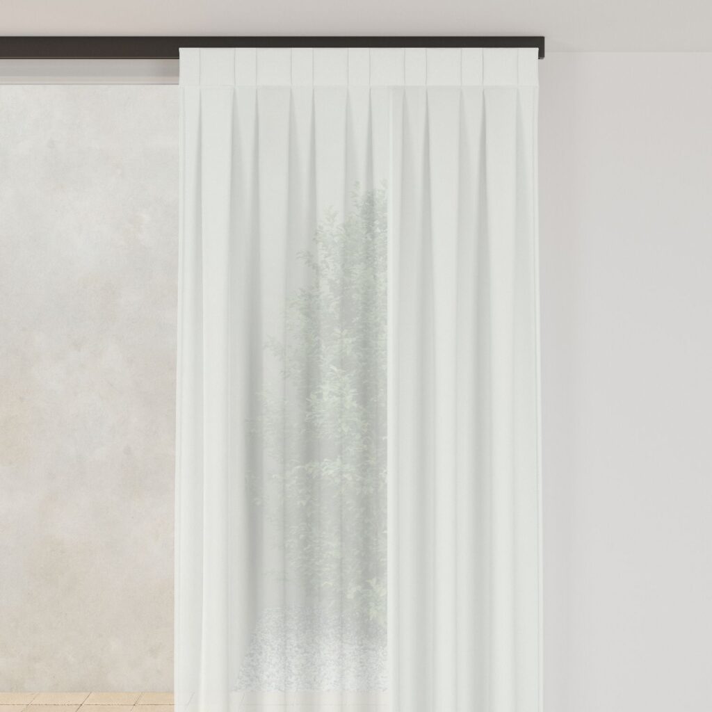 Fabricada en visillo ligero 100% poliéster, esta cortina combina resistencia y practicidad. Su tejido ignífugo cumple con los requisitos exigidos en espacios públicos, ofreciendo mayor seguridad sin renunciar a una imagen cuidada y profesional.